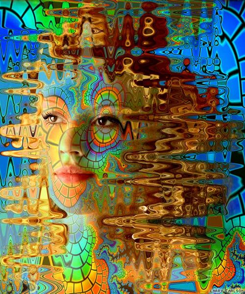 Breakthrough by Larry Carlson - This psychedelic art serves as an accurate portrayal of a single frame of the common psychedelic effect known as geometry as it is sometimes experienced at high levels with open eyes when staring at a persons face.